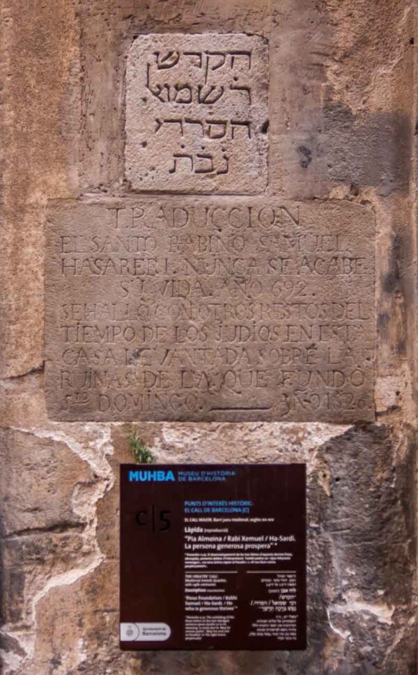 Según la tradición, hubo presencia sefardí en Barcelona desde una fecha tan temprana como el 850, año en el que un líder judío de Babilonia habría dirigido una carta «a los judíos» de la ciudad. Más allá de esa primera posibilidad, lo que sí se tiene documentado es que en el asalto de Almanzor a la ciudad, en el 985, varios judíos murieron y el Conde de Barcelona heredó las propiedades de aquellos que no tenían descendencia.