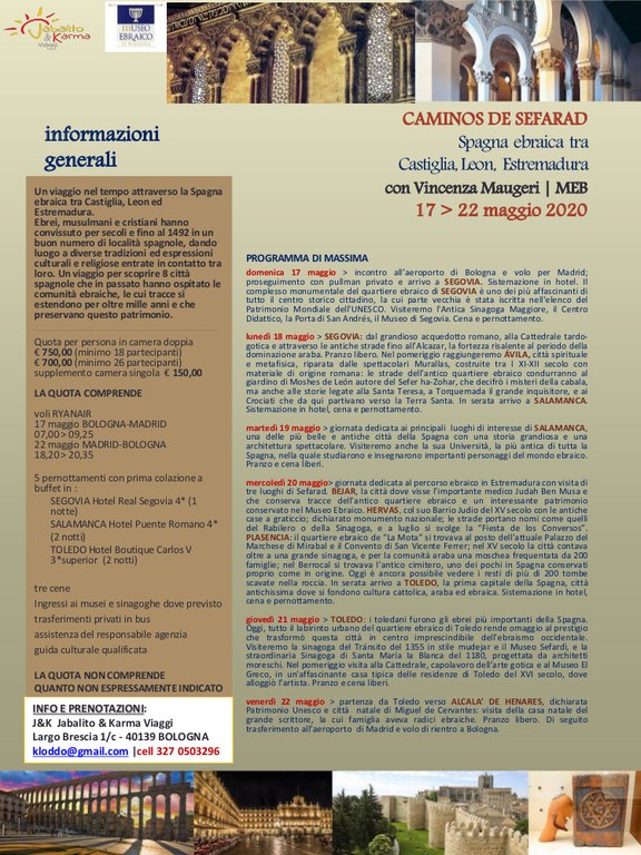 El Museo Ebraico de Bolonia, en colaboración con la Red de Juderías de España, pone en marcha el programa de viajes organizados “Caminos de Sefarad”.