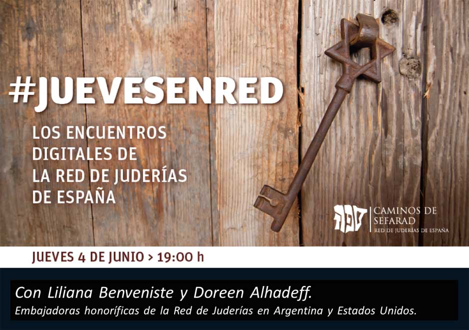La cuarta charla del ciclo #JuevesEnRed de la Red de Juderías de España, emitido en Facebook Live el pasado jueves 4 de junio de 2020, contó con la participación de Marta Puig, gerente de la Asociación, que presentó los diferentes proyectos de la asociación, y contó con la participación de Doreen Alhadeff y Liliana Benveniste, Embajadoras Honoríficas de la Red de Juderías de España en Estados Unidos y Argentina.
