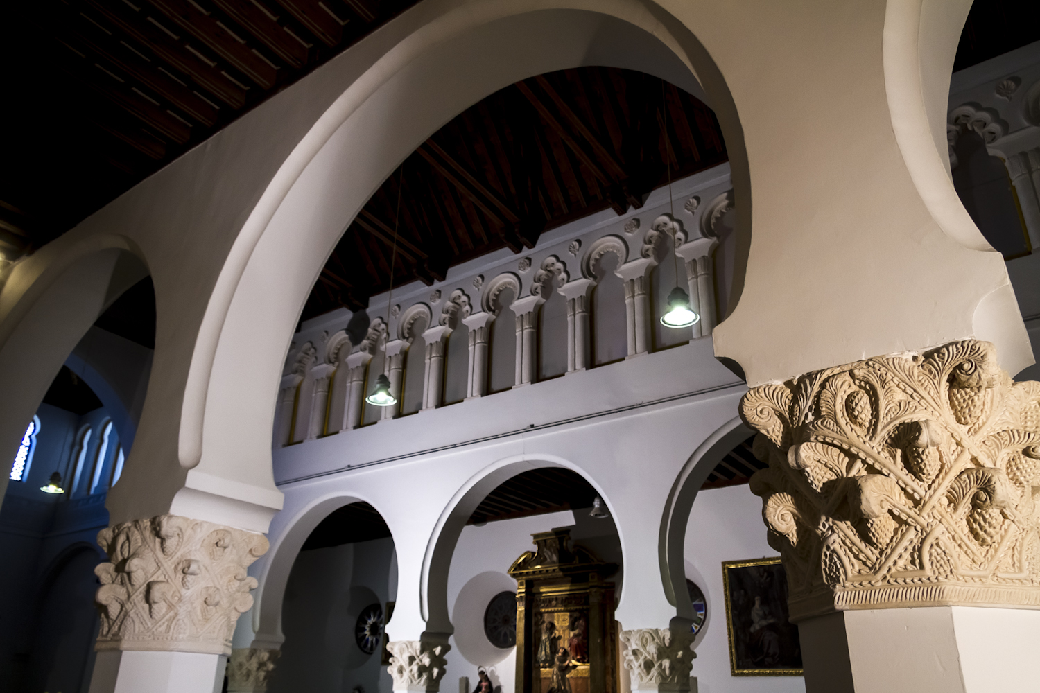 Antigua Sinagoga Mayor de Toledo, Santa María la Blanca, de finales del siglo XII, es uno de los monumentos más bellos de la judería de Toledo como atestigua su magnífico entramado de arcos de herradura y columnas sostenidas por hermosísimos capiteles ornamentados con tallos de piñas y volutas en composición romboidal, entre los cuales no existe uno que sea igual al otro.