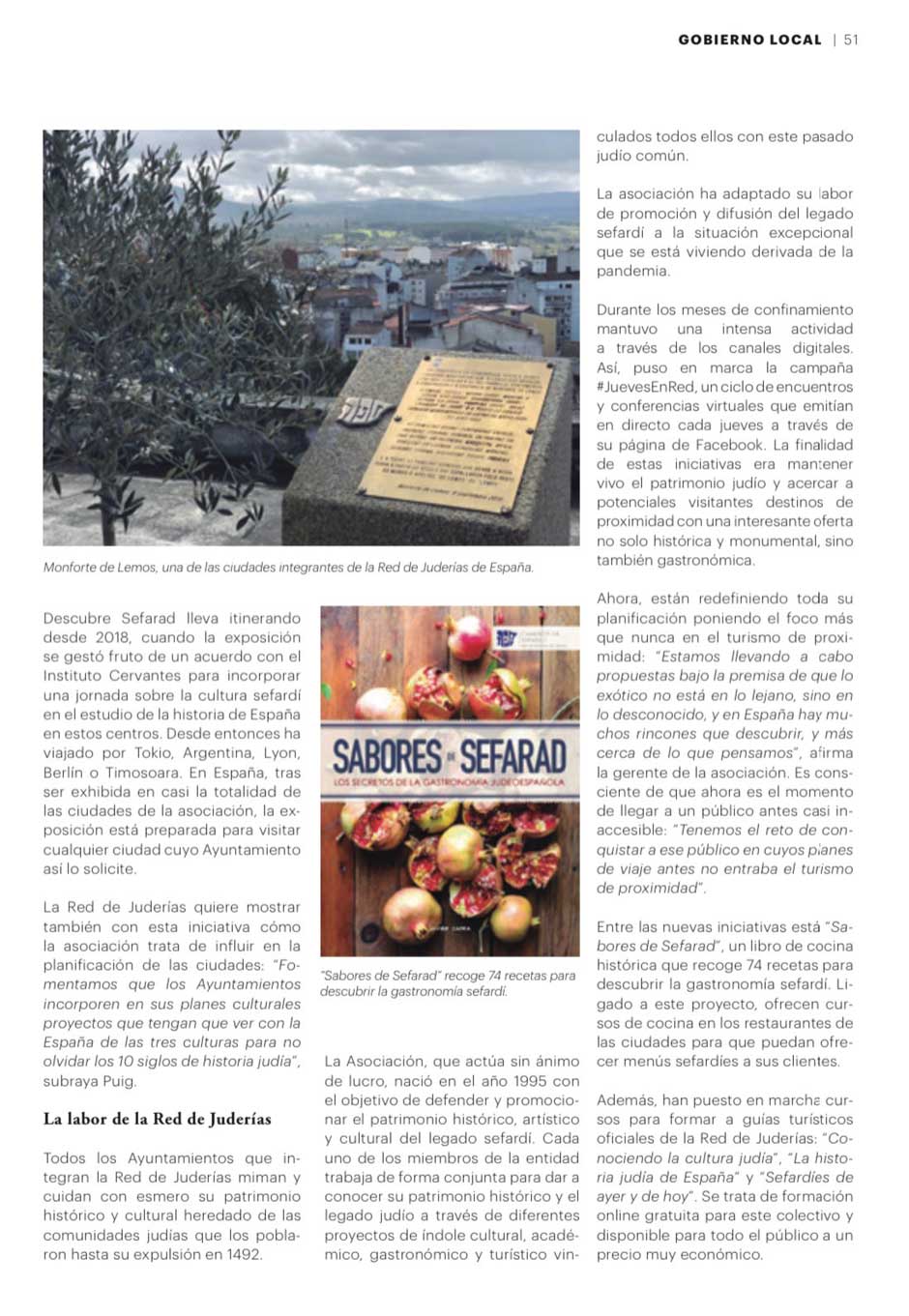 «Carta Local», la revista de la Federación Española de Municipios y Provincias dedica un reportaje a la Red de Juderías con motivo de la exposición «Descubre Sefarad.