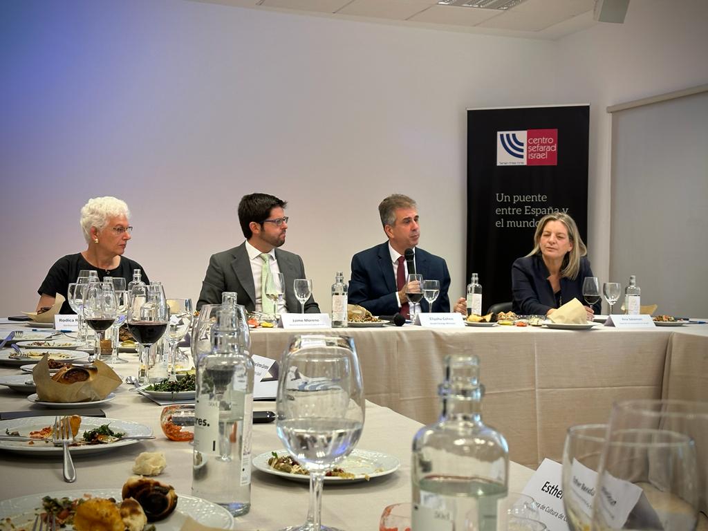 En el marco de su visita oficial a España, Eli Cohen, ministro de Asuntos Exteriores de Israel, y tras su encuentro con su homólogo español, José Manuel Albares, y la presidenta de la Comunidad de Madrid, Isabel Díaz Ayuso, visitó el Centro Sefarad-Israel, donde fue recibido por su director, Jaime Moreno Bau, la Junta Directiva de la Cámara de Comercio e Industria Hispano-Israelí y por la directora de la Red de Juderías de España, Marta Puig. El encuentro también contó con la presencia de la Embajadora de España en Israel, Ana Salomón, y de la Embajadora de Israel en España, Rodica Radian-Gordon.