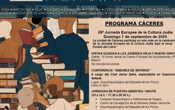 Las XXVI Jornadas Europeas de la Cultura Judía, que tendrán lugar el 7 de septiembre en Cáceres, incluirán este año la divulgación de la cocina sefardí, a cargo del chef Javier Zafra, además de visitas guiadas a las juderías cacereñas.