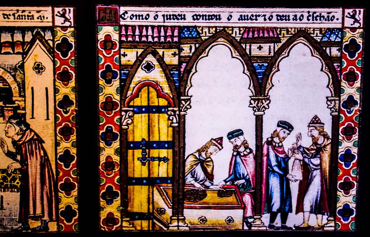 Tras la expulsión de 1492 a esta calle Falagueira se la empezó a llamar calle de Cruz, un nombre muy habitual en antiguas juderías que querían reforzar, por así decirlo, su recién adquirida fe cristiana. Caminando por ella o por la de Abelardo Baanante, la Rúa Vella, la Travesía de la Cárcel Vieja -que entonces era la calle A Zapatería- o la Rúa Pescadería nuestros pasos se irán adentrando en zonas en las que se tiene constancia documental de que vivían familias judías, que probablemente usaban la pequeña pero llena de encanto medieval Puerta de Pescaderías, una de las dos que se conservan del recinto amurallado de la ciudad. También había familias sefardís junto a la otra puerta de la muralla, la Nova, una imponente estructura que se reconstruyó en el último cuarto del siglo XV. Así como en otro de los rincones más hermosos de la ciudad: la Plaza de España, que entonces era la rúa de los Ferreiros.